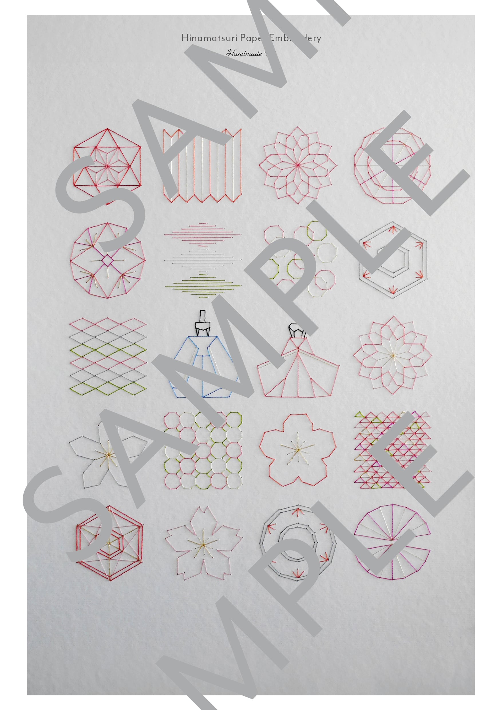 雛祭り紙刺繍図案のデータ販売商品です。
