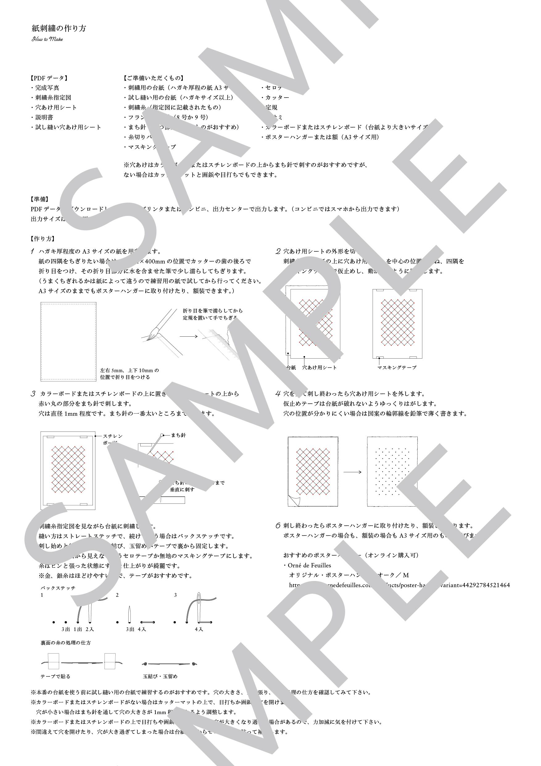 紙刺繍が初めての方でも分かりやすいように、作り方の詳細な説明書をつけています。