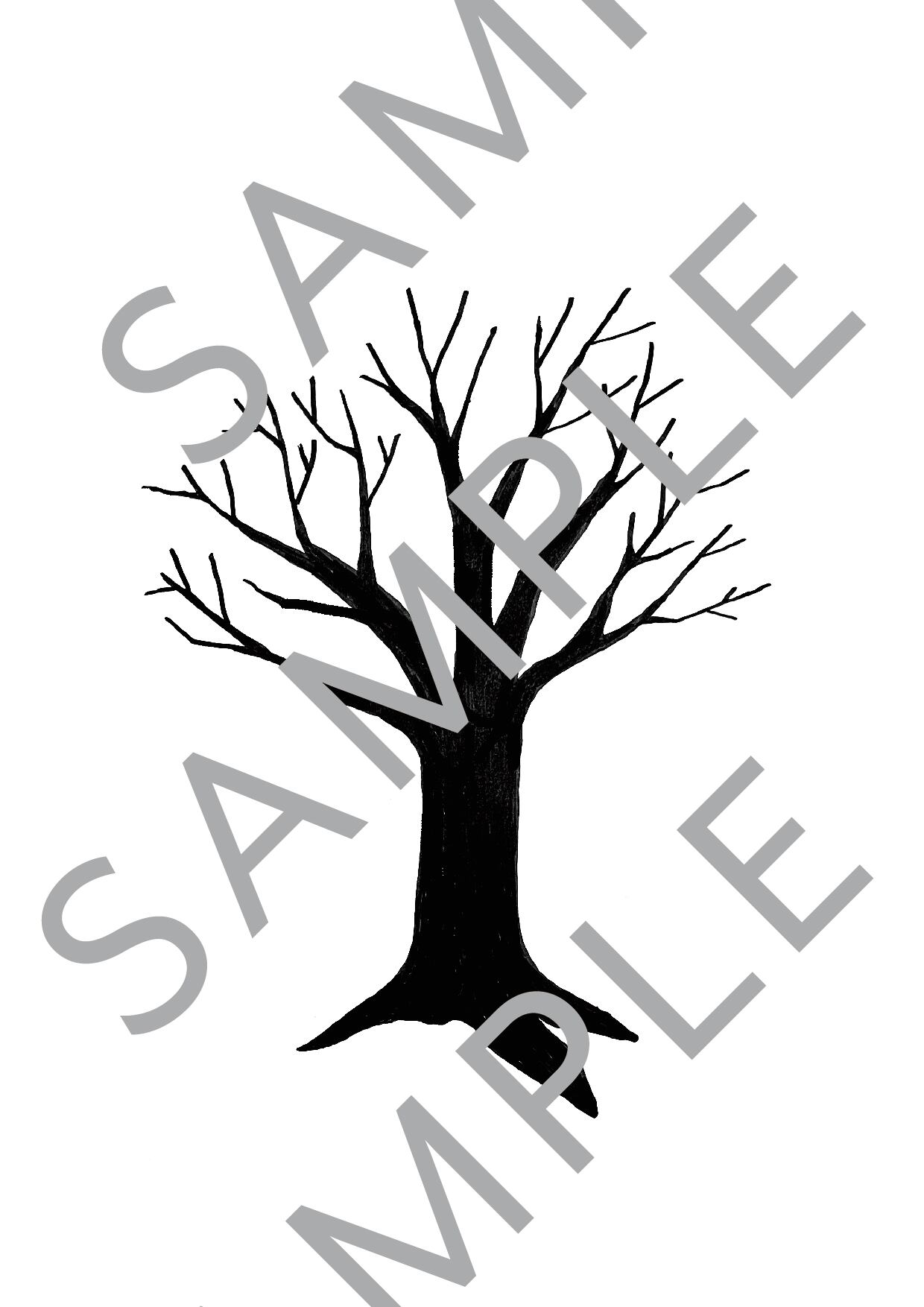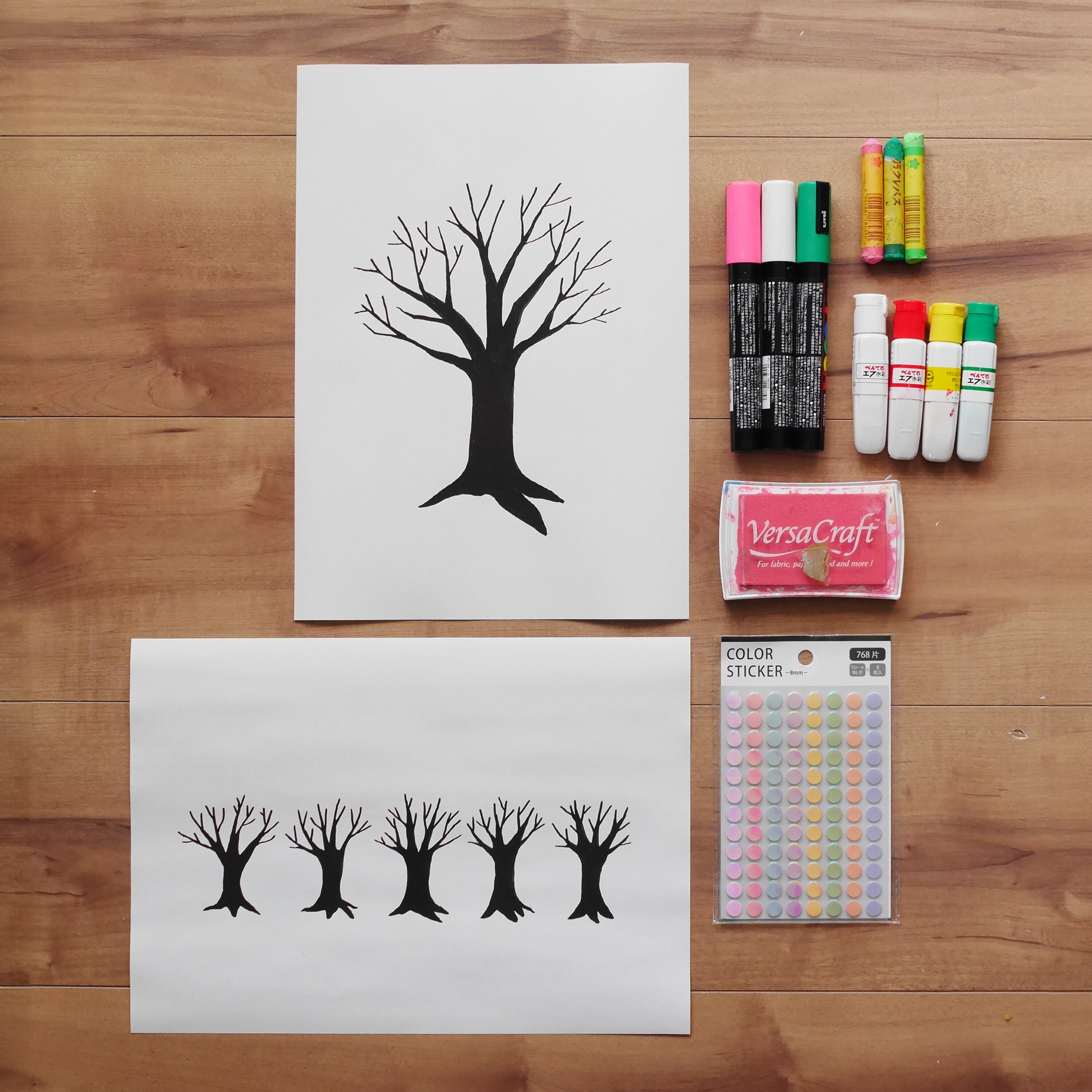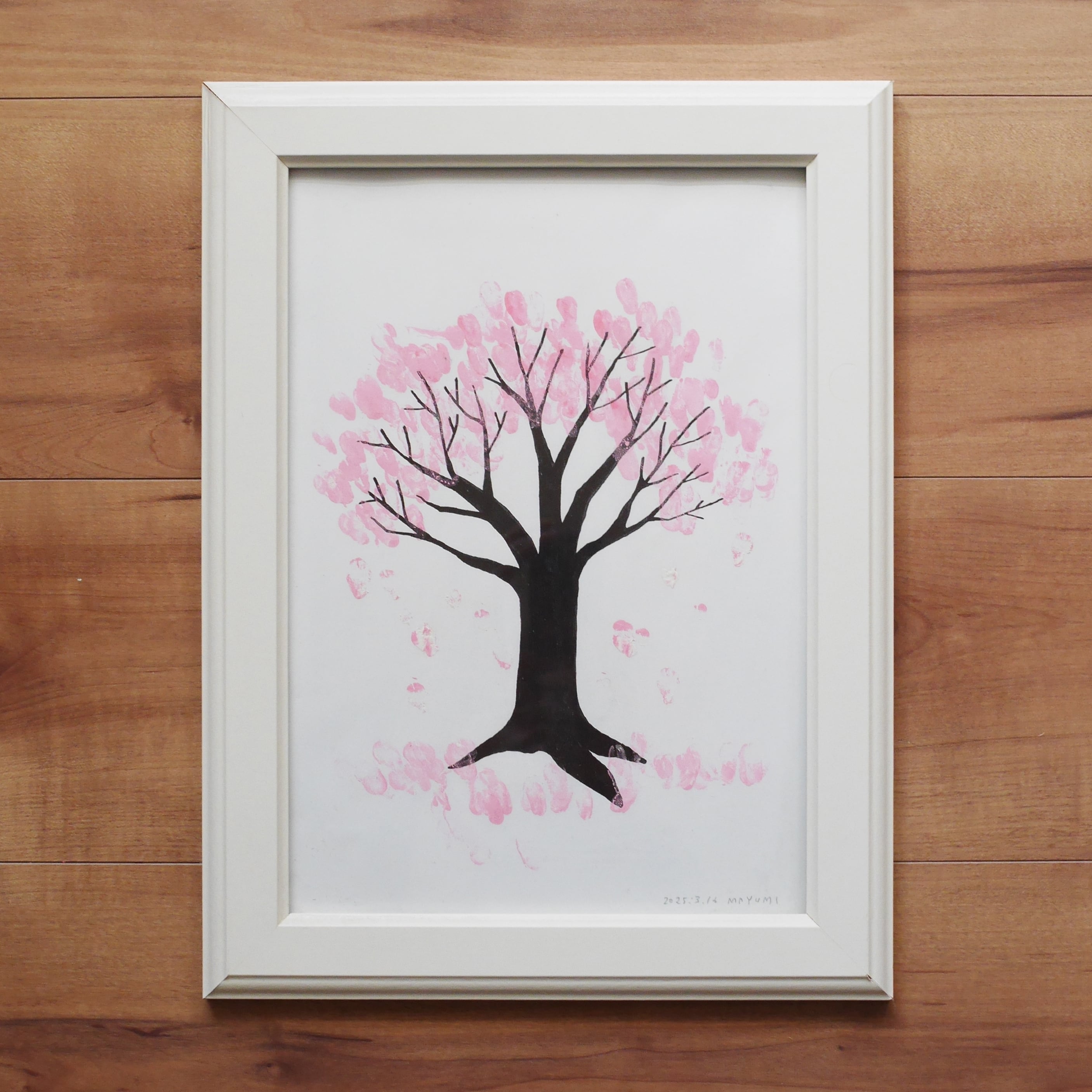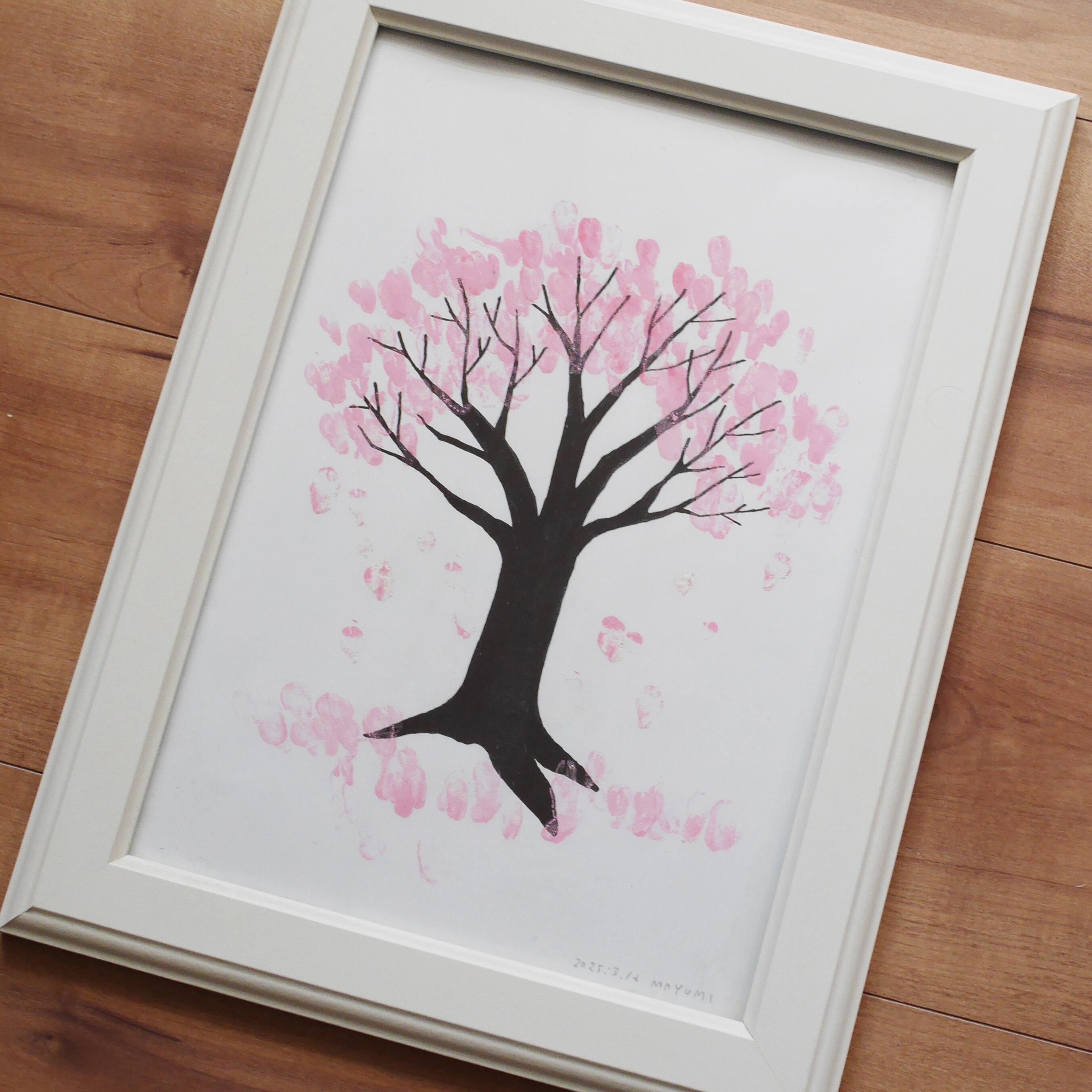 赤ちゃんの指スタンプ、子供のクレヨンや絵の具、大人の繊細なタッチまで、自由に彩れる桜の木のイラストです。