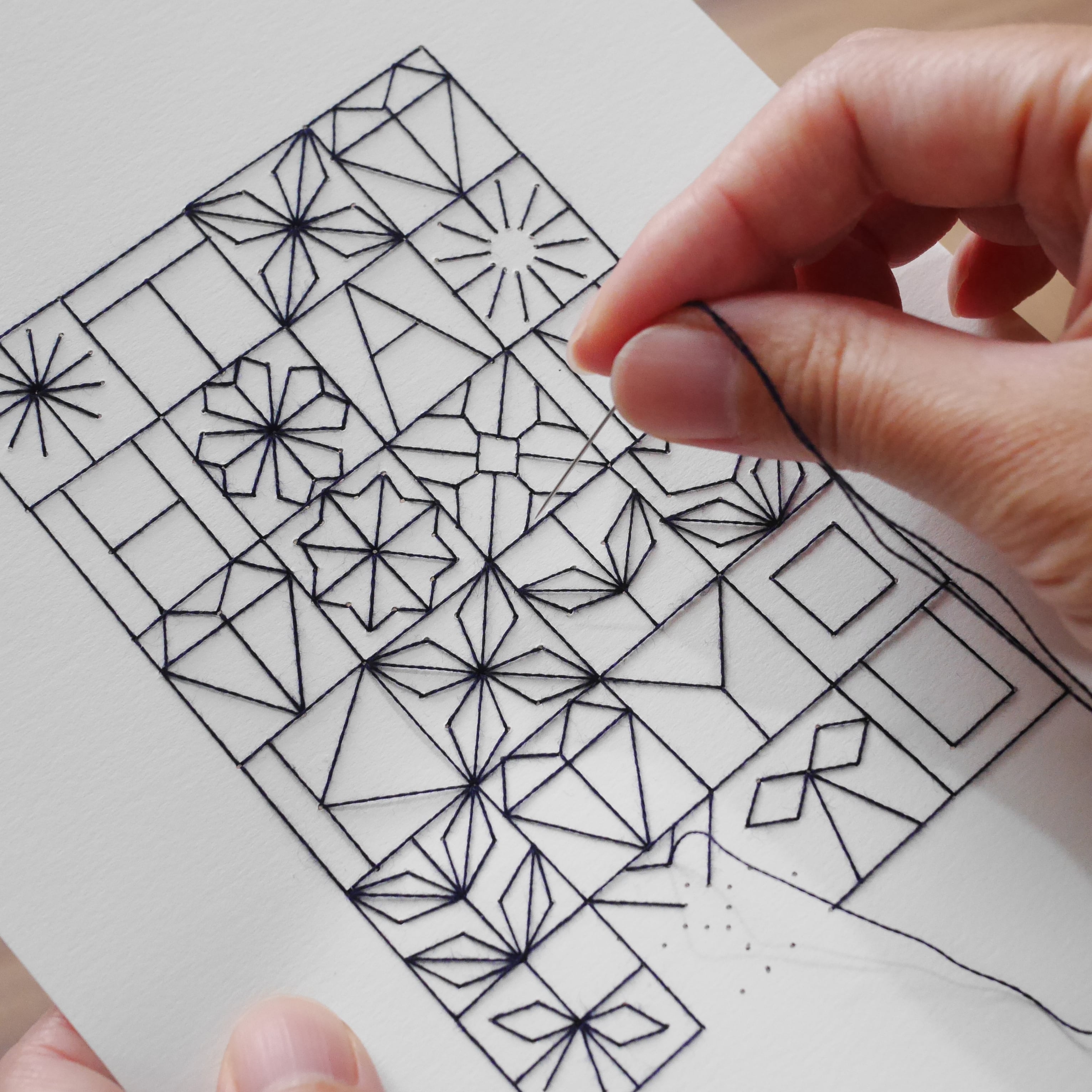 3. 穴を全て刺し終わったら穴あけ用シートを外し、刺繍します。