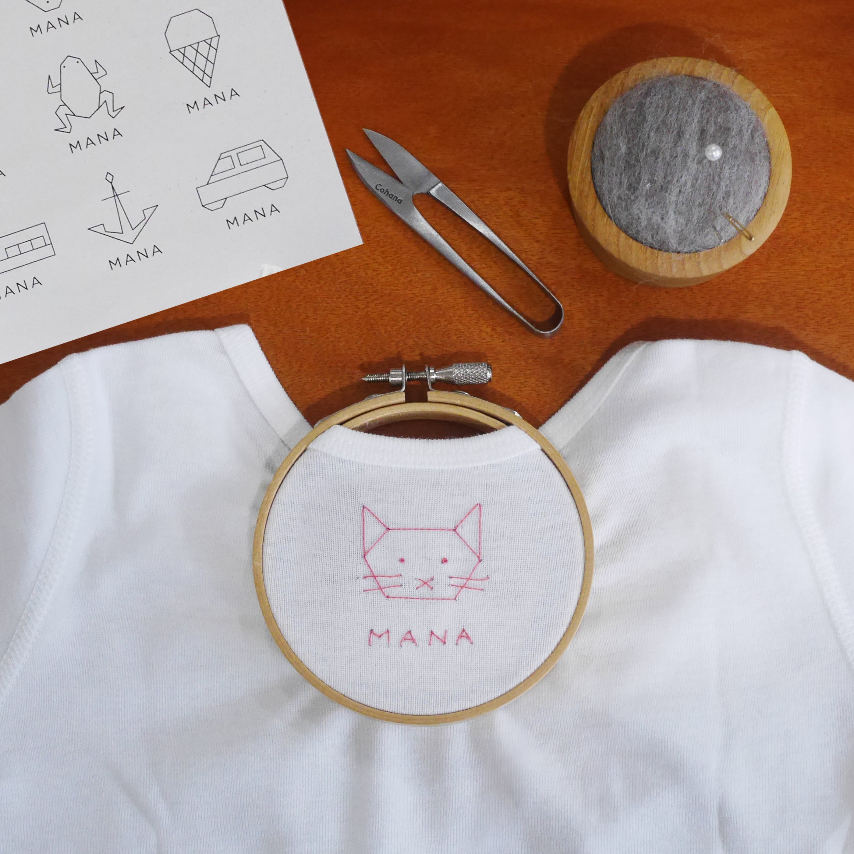図案と説明書がセットになっており、1本取りのシンプルな刺繍なので初めての方にもおすすめです。